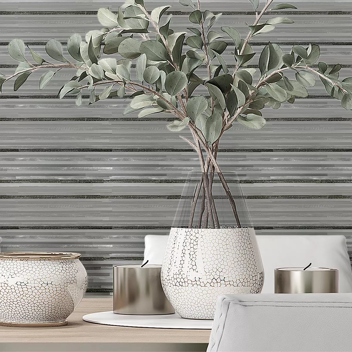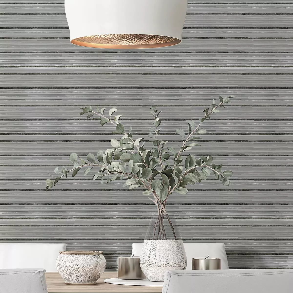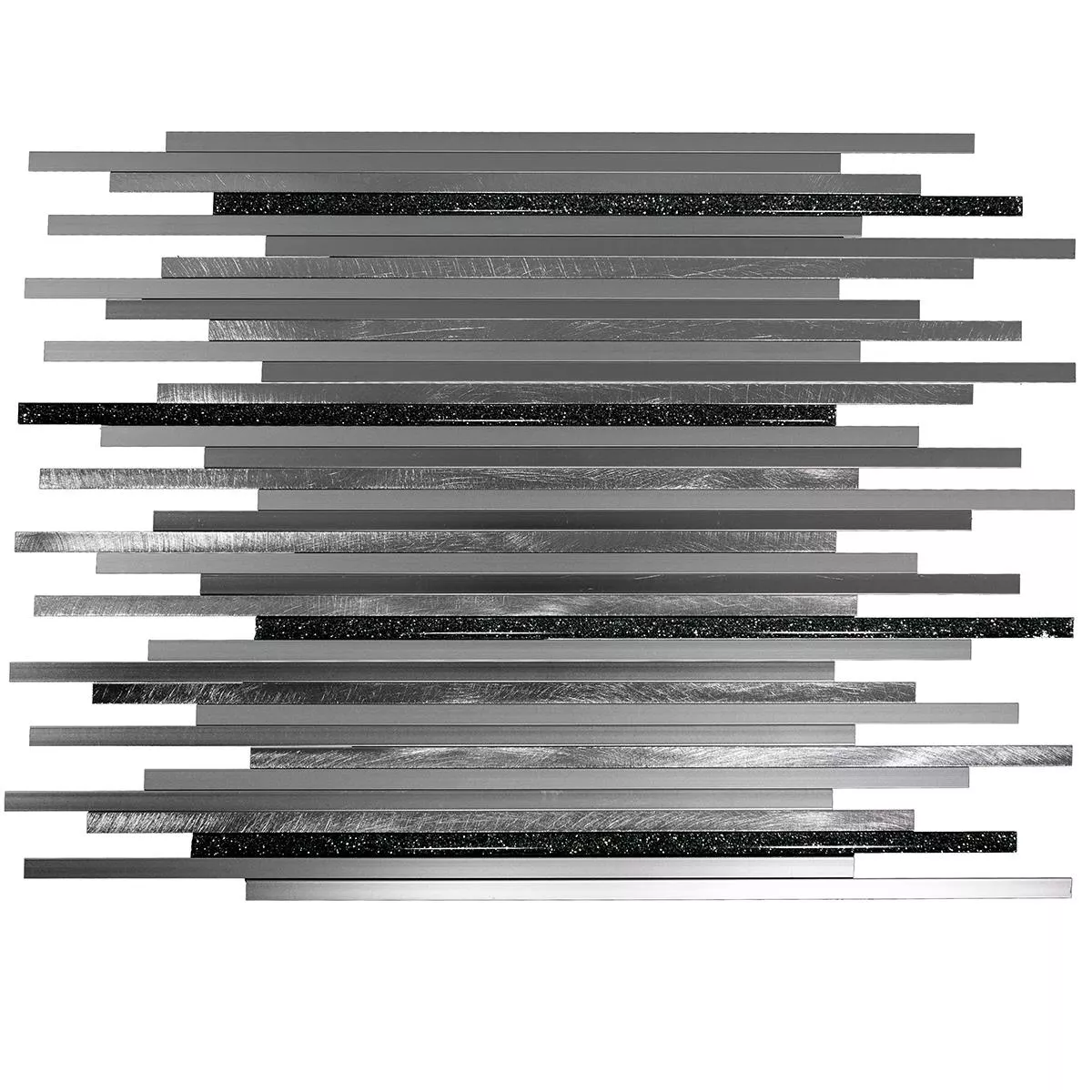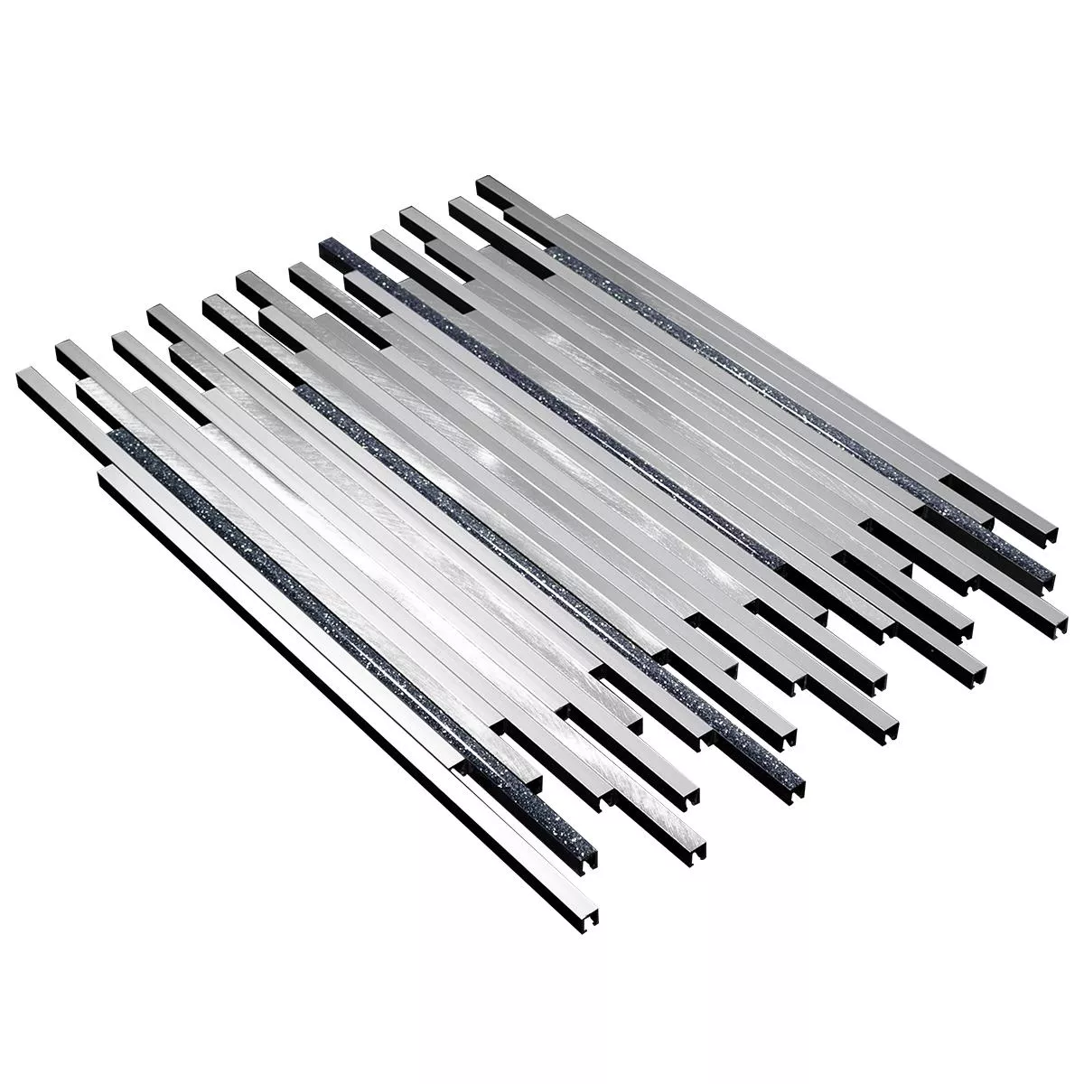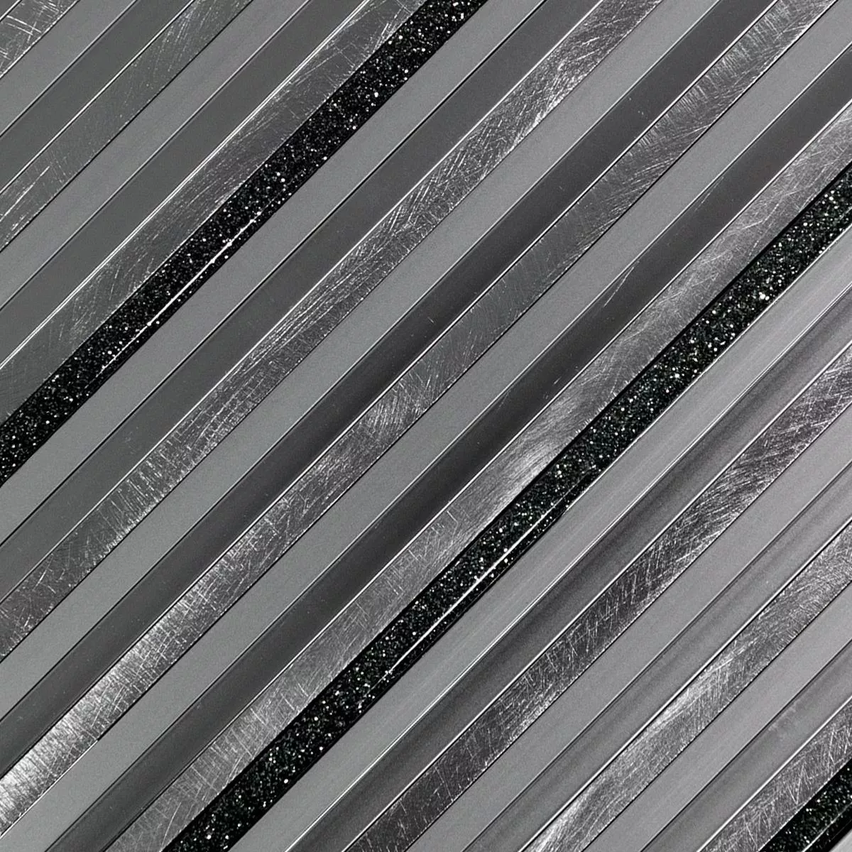 Die Aluminium Metall Mosaik Fliesen Bilbao in Stäbchenformat verleihen Ihrem Innenbereich eine edle Metalloptik in Schwarz und Silber. Die gebürstete, matte Oberfläche unterstreicht den zeitgenössischen Look. Mit einer Stärke von 8mm bieten sie Robustheit und Langlebigkeit.