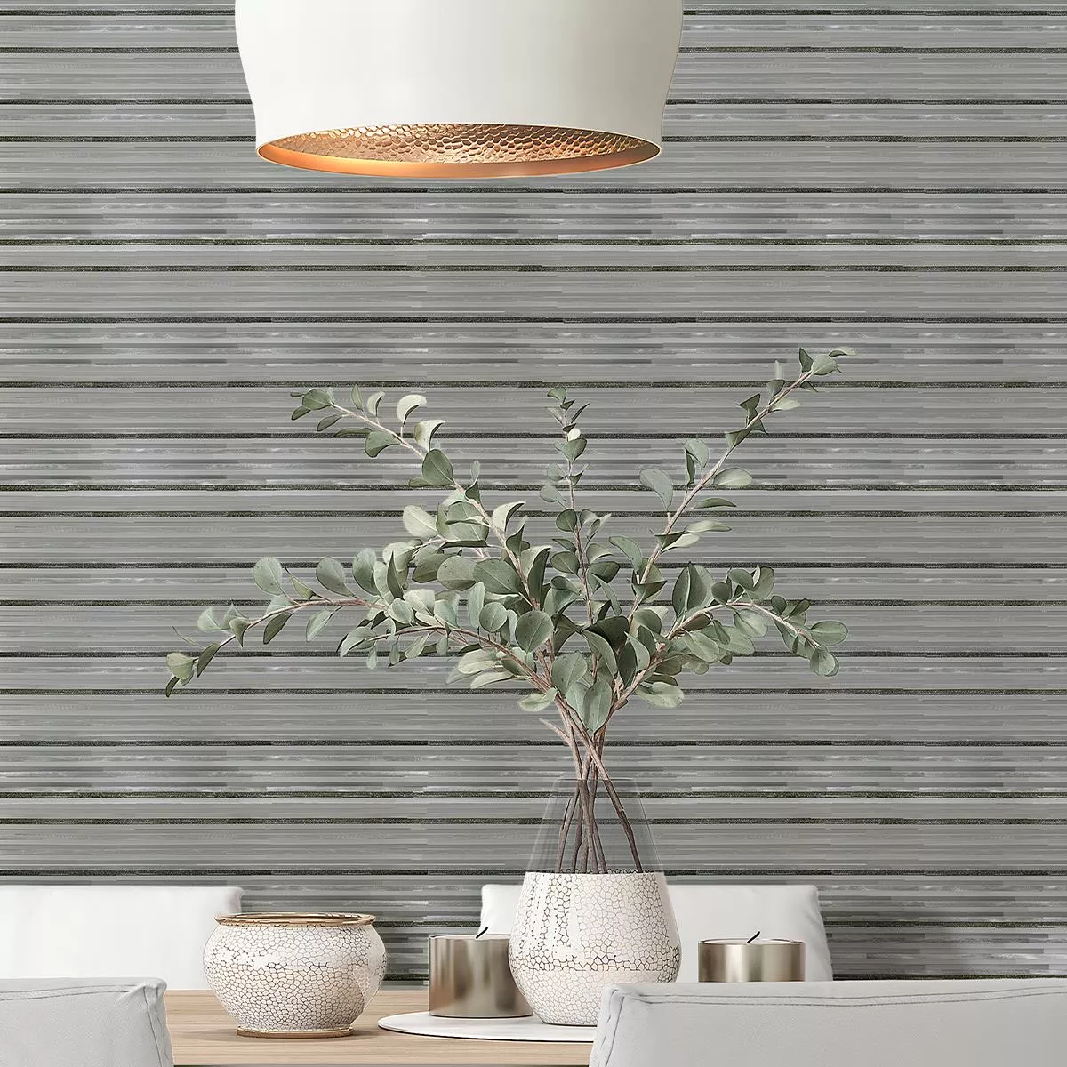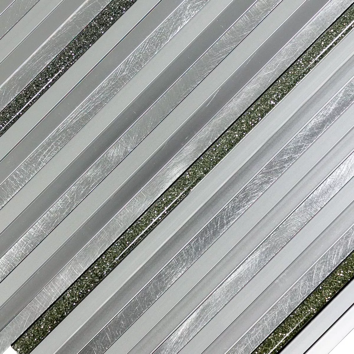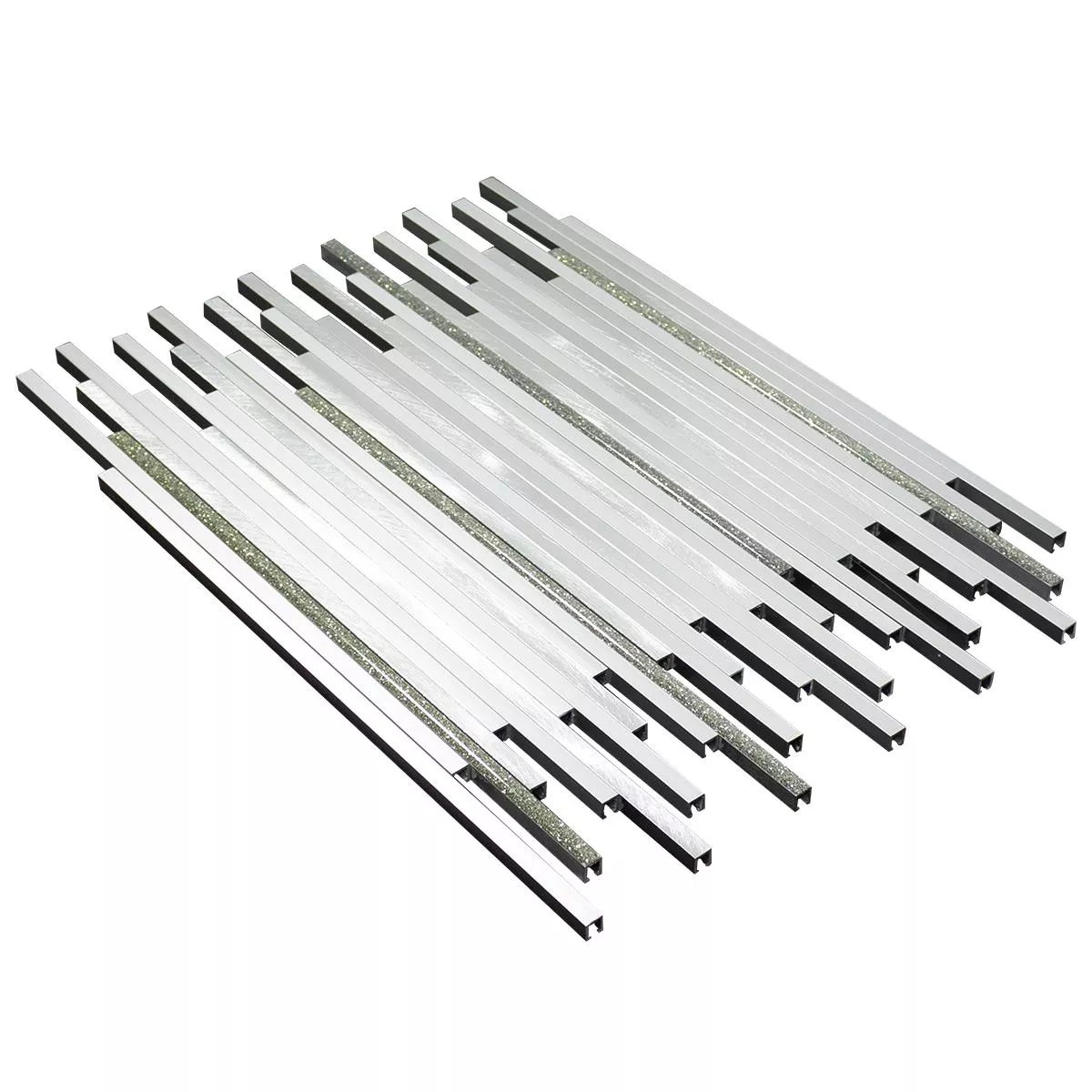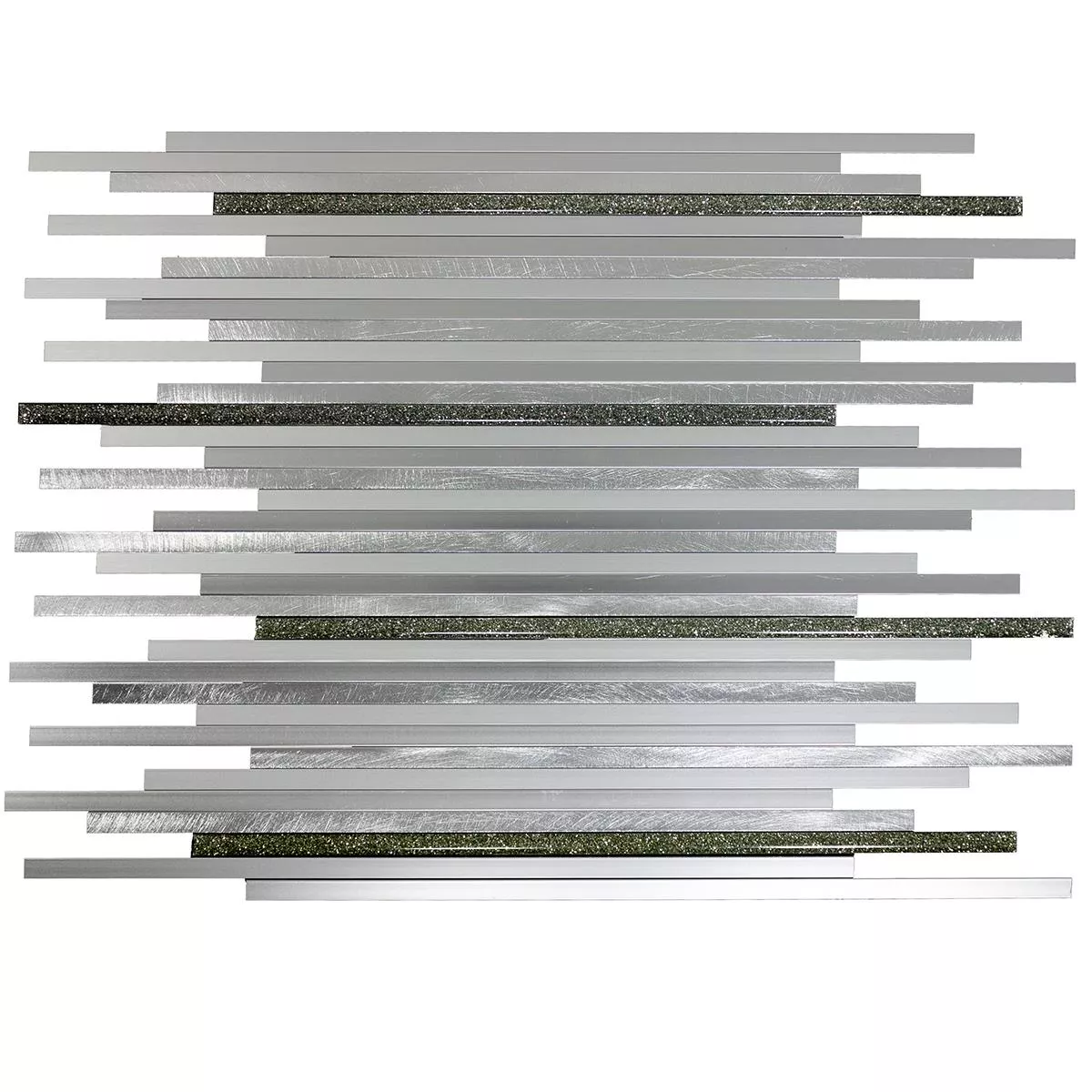 Die Aluminium Metall Mosaik Fliesen Bilbao in Stäbchenform verleiht Ihrem Innenbereich eine zeitgemäße Ästhetik. Mit einer Oberfläche in gebürsteter Metalloptik und einer matten Textur strahlen sie Eleganz aus. Die Silberfarbe und die Steingröße von 7,5x300mm bieten einzigartige Akzente.