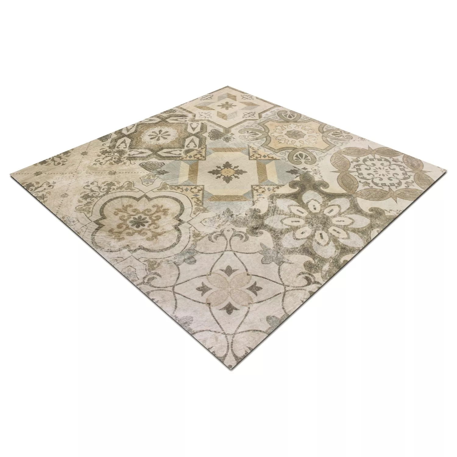 Quadratische Bodenfliesen mit sanften floralen Mustern