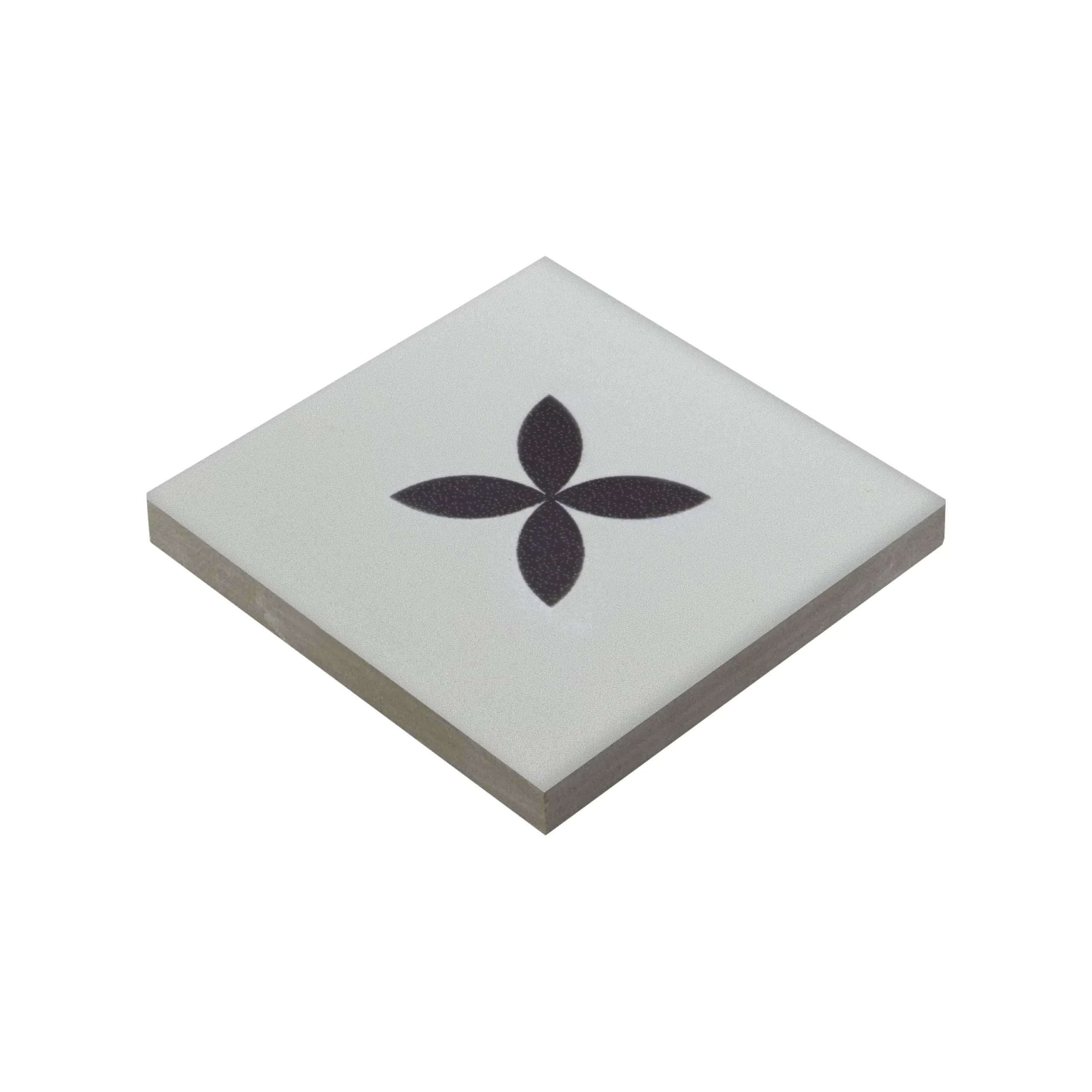 Die Feinsteinzeug Fliesen Genexia Schwarz Weiß Decor 1 Einleger bringen zeitlose Eleganz in jedes Interieur. Das quadratische Format mit einer matten Oberfläche eignet sich sowohl für Wände als auch für Böden, und ihr dekoratives Schwarz-Weiß-Design verleiht Ihren Räumen eine besondere Note.