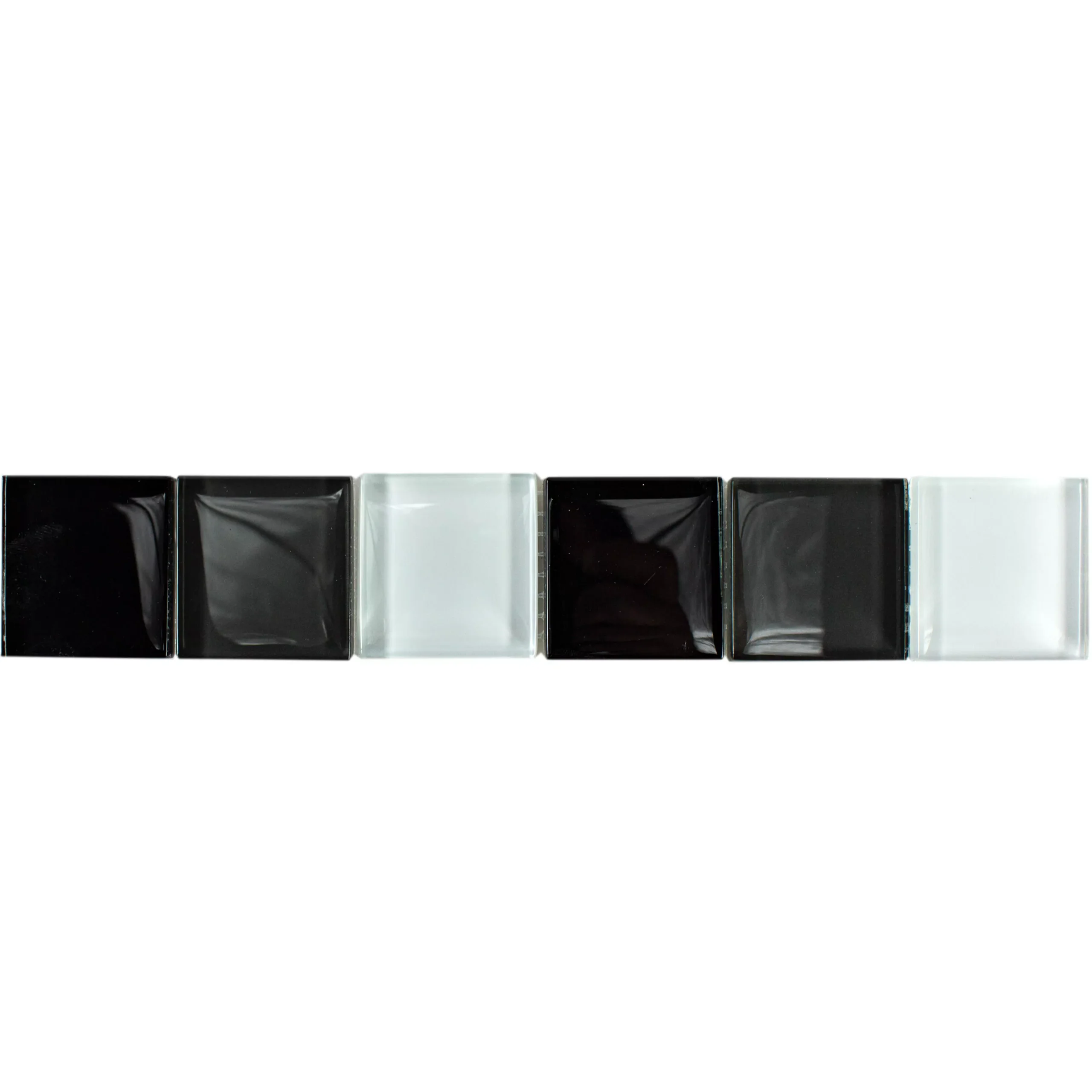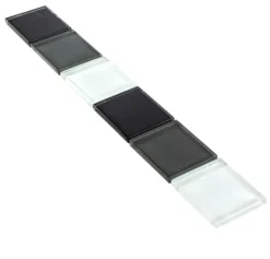 Die Glas Fliesen Bordüre Exira in den Farben Grau, Schwarz und Weiß ist eine quadratische Fliesenbordüre mit einer Steingröße von 48x48mm. Die Oberfläche der Fliesen ist glänzend und die Fliesen- bzw. Mattengröße beträgt 4,8x30cm. Eine einzelne Matte hat eine Fläche von 0,015m². Die Stärke der Fliesen beträgt 8mm.