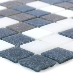 Die Glasmosaik Fliese Nelson in Weiß Grau Metallic ist ein hervorragender Bodenbelag im Bad. Sie eignen sich als komplett durchgehende Variante genauso wie zum Auflockern zwischen unifarbenen Bodenfliesen. An der Wand machen diese Mosaikfliesen genauso eine gute Figur. Hier werden sie gerne aus Waschtischverkleidung und für die Wand verwendet. Sie sind für den Innen- und Außenbereich sowie für Feuchträume gut verwendbar.