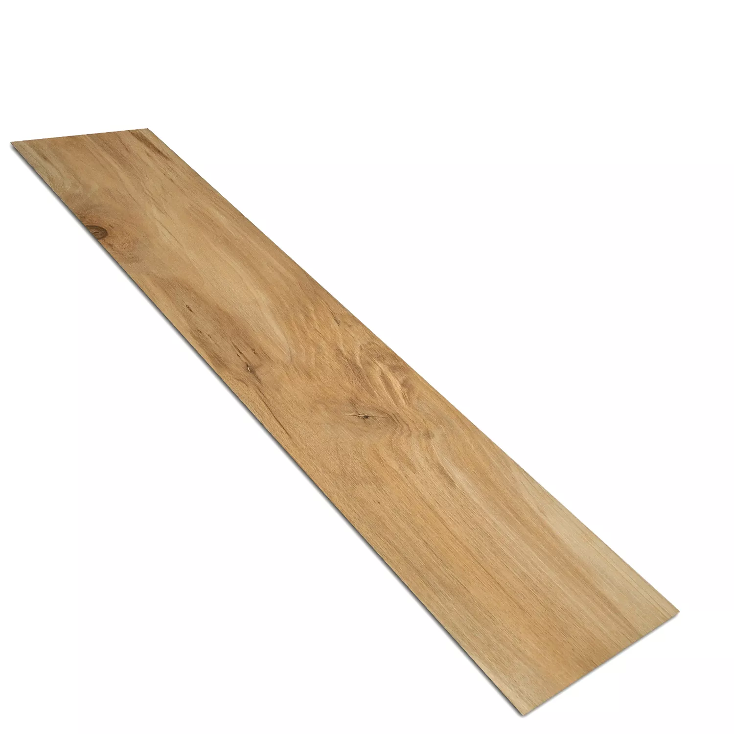Mit den Feinsteinzeug Bodenfliesen Carmenta in Beige kommt natürliche Harmonie in den Raum. Die Holzstruktur verleiht dem Boden einen zeitlosen Charme und lässt den Wohnraum wärmer wirken. Das matte Oberflächenmuster dieser Holzoptik Fliesen bringt zusätzliche moderne Eleganz. Durch ihre ausgezeichnete Wärmeleitung sind die Bodenfliesen auch für Fußbodenheizungen geeignet. Im Gegensatz zu Holzböden haben Holzoptik Fliesen den Vorteil, nicht zu zerkratzen und sind außerdem UV-beständig. Auch einem Kamin steht nichts im Weg, denn die Feinsteinzeugfliesen sind feuerfest.