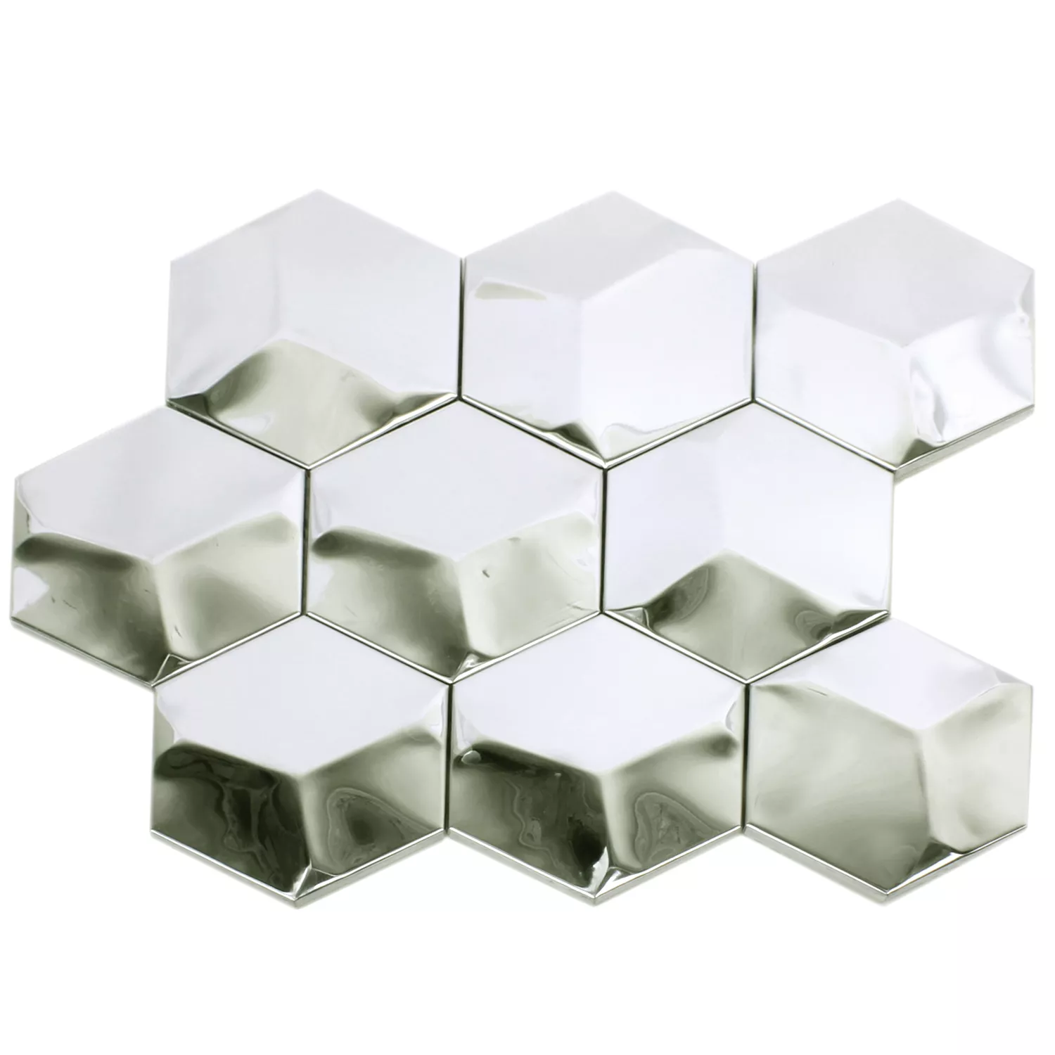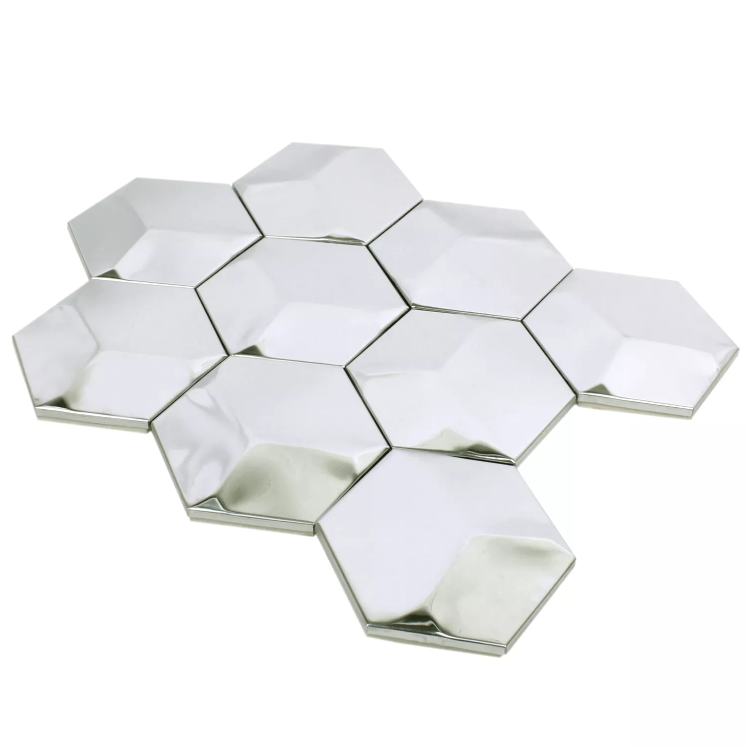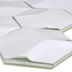 Für alle extravagant eingerichteten Räume sind die modernen Mosaikfliesen Modell Contender Hexagon in der Farbe Silber Glänzend eine gute Wahl. Die optisch ansprechenden Wandfliesen sind aus hochwertigem gebürsteten Edelstahl hergestellt, so dass sie viele Jahre lang mit dem einzigartigen Look begeistern. Die robusten Wandfliesen sind als 3D Mosaik konzipiert. Daher ergeben sich bei Lichteinfall nicht nur wegen der glänzenden Oberfläche viele schöne Effekte. Auch die 3D Optik sorgt für spezielle Lichtspiegelungen, die das Tageslicht und auch jedes künstliche Licht auf eine besonders faszinierende Art und Weise im Raum brechen.