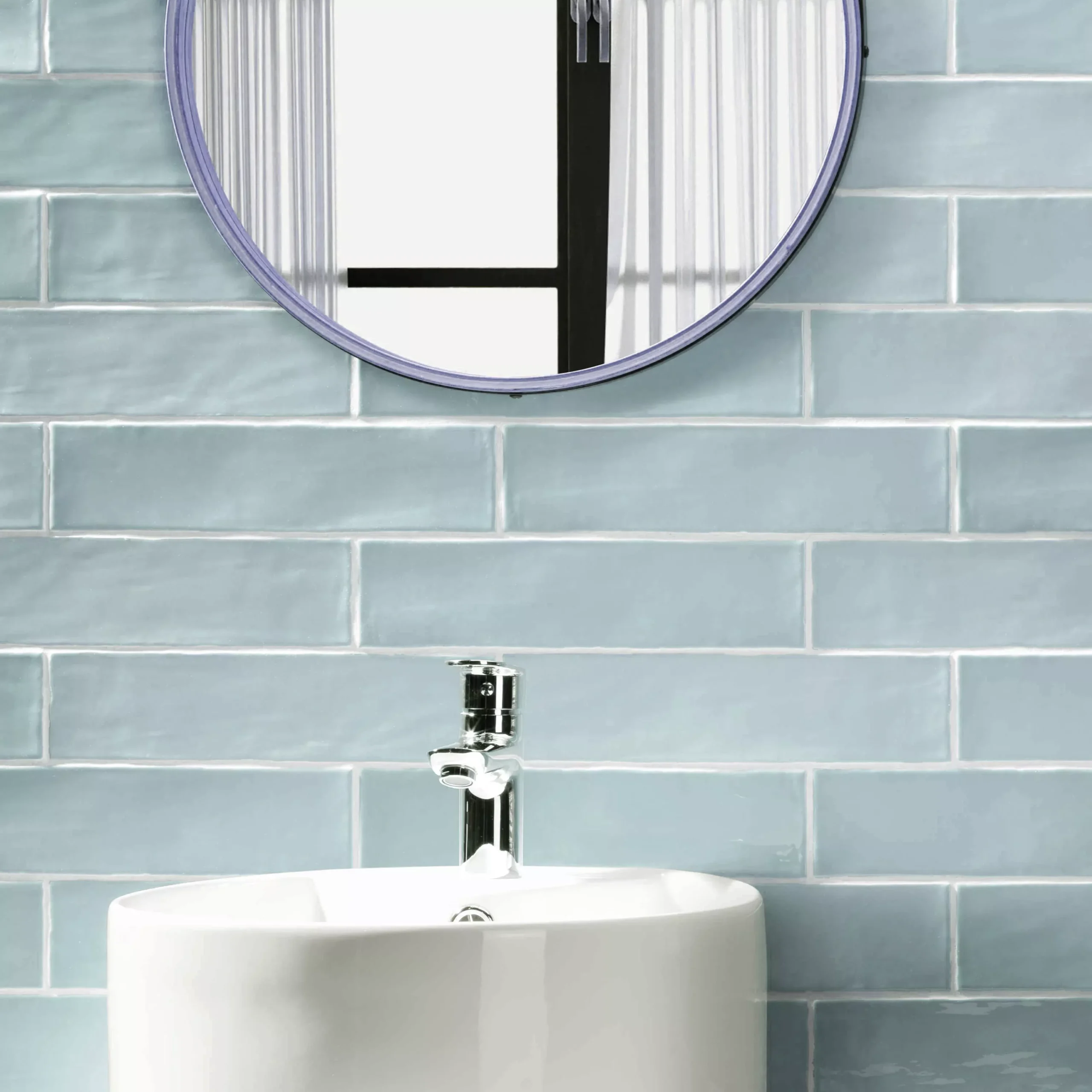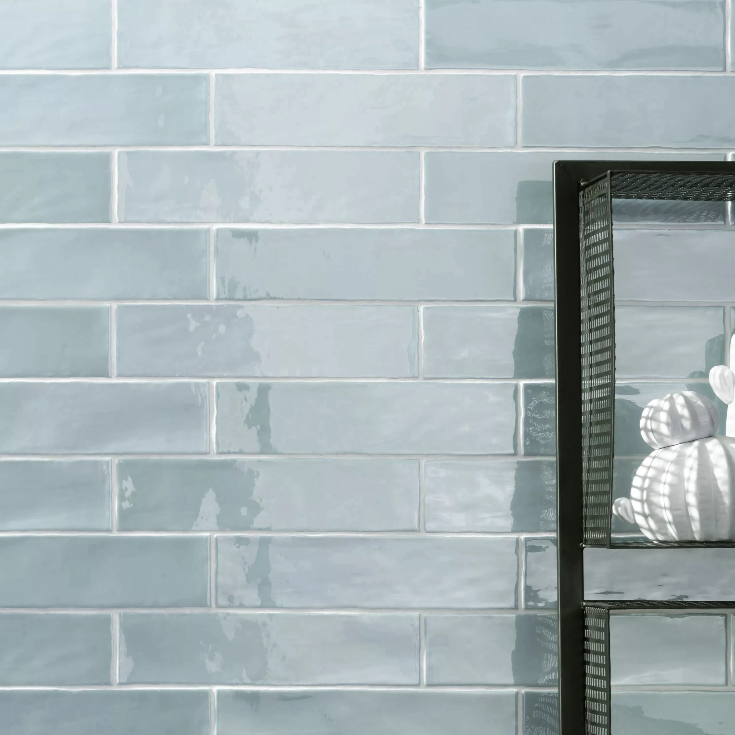 Die glänzende und gewellte Oberfläche verleiht der Fliese eine lebendige Textur und reflektiert das Licht auf eine elegante Weise. Dadurch entsteht ein interessantes Spiel von Schattierungen und Reflexionen, das zu einem ansprechenden visuellen Effekt führt. Die Himmelblau-Farbe vermittelt ein Gefühl von Frische und Ruhe, und sie passt wunderbar zu verschiedenen Einrichtungsstilen.