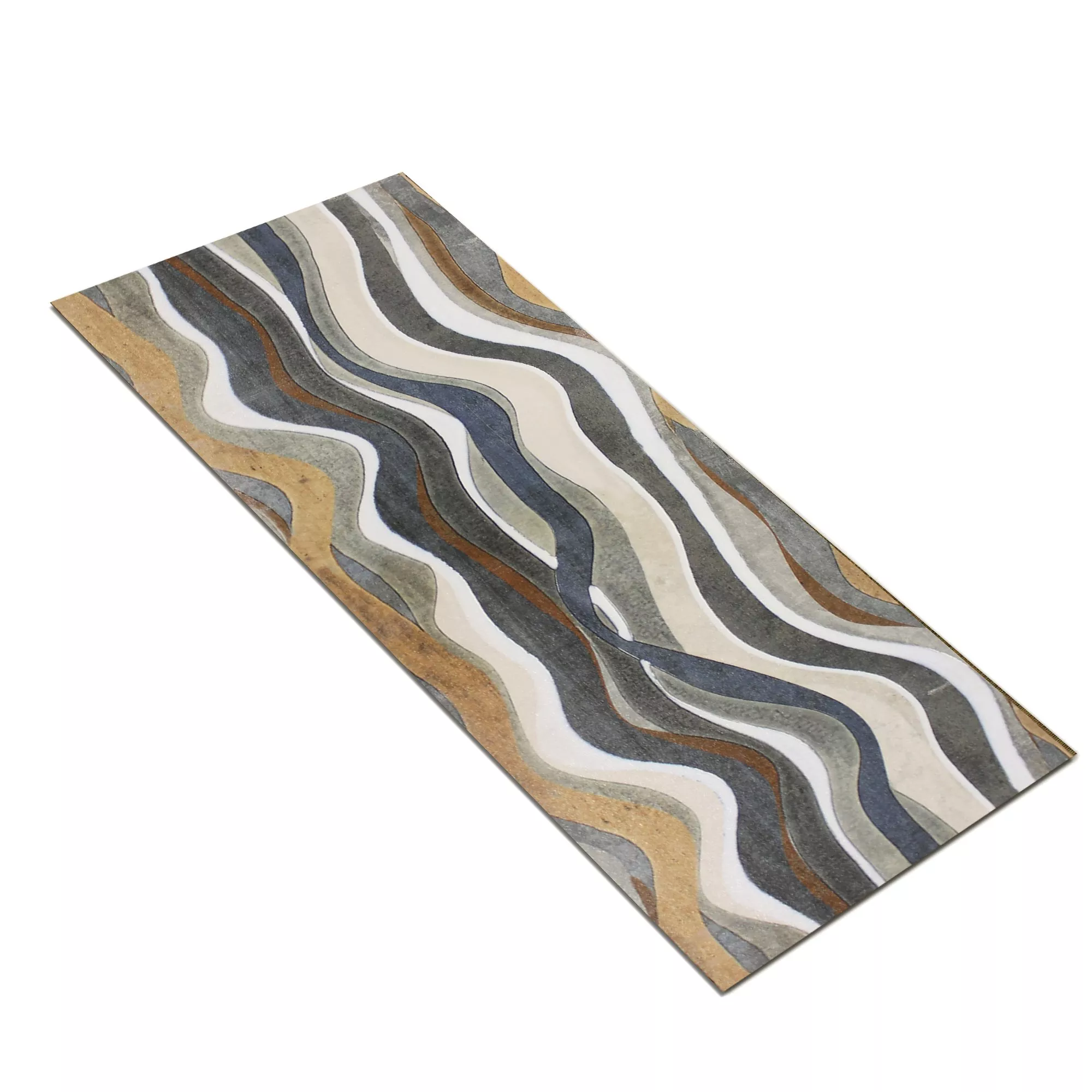 Die rechteckigen Badfliesen Fashion Dekor Bunt bringen frischen Schwung in jedes Bad, egal ob sie als akzentuierter Streifen angebracht oder eine ganze Wand damit gestaltet wird. Diese Badfliesen gibt es in zwei Variationen – einmal in bunt, mit einem wellenförmigen Muster und einmal in beige. Die bunte Wandfliese ist mit den Farben blau, grau, anthrazit, sandfarben, weiß und beige sehr ansprechend. Diese lassen sich sehr gut mit den beigen Fliesen kombinieren.