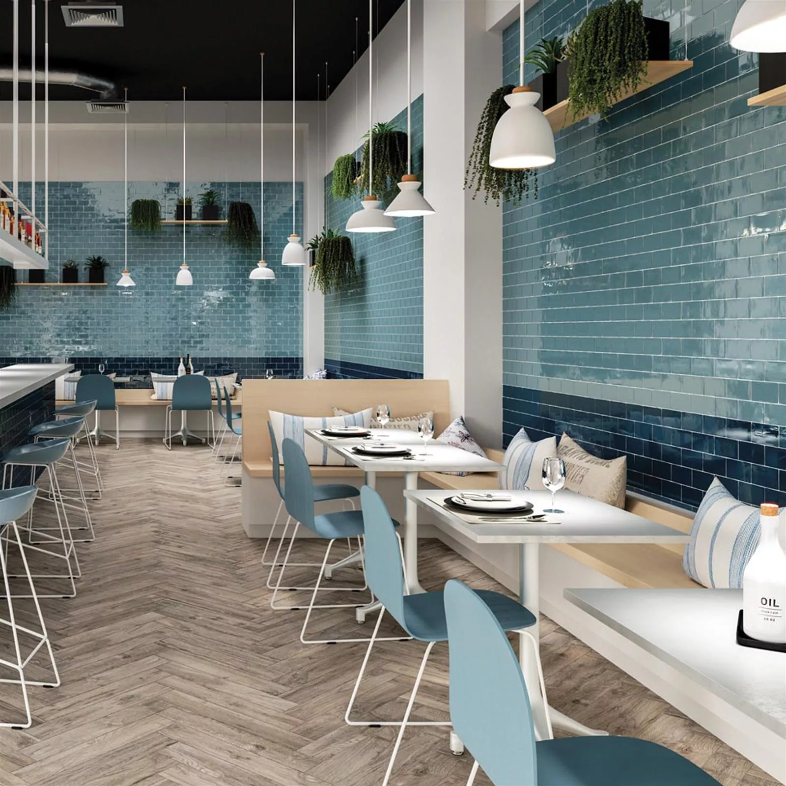 Durch die leicht gewellte Oberfläche schimmert die Fliese anmutig und verleiht dem Raum eine natürliche zurückhaltende Lebendigkeit. Da die Steingutfliese beständig gegen Feuchtigkeit ist, eignet sie sich vortrefflich für Badezimmer, Küche und Sauna, aber auch andere Räume im Innenbereich können mit der Wandbekleidung wohnlich und attraktiv gestaltet werden. Die Fliese lässt sich leicht verarbeiten und eignet sich für die Verschönerung von großen und kleinen Räumen. Die ästhetischen Farben harmonisieren perfekt miteinander. So können Flächen sehr dekorativ andersfarbig optisch aufgelockert oder Nischen abgesetzt werden. Egal ob die Inneneinrichtung modern oder verspielt ist, diese dezente Fliese passt sich allen Stilrichtungen an und unterstreicht eine individuelle Darstellung, ohne sich in den Vordergrund zu drängen.